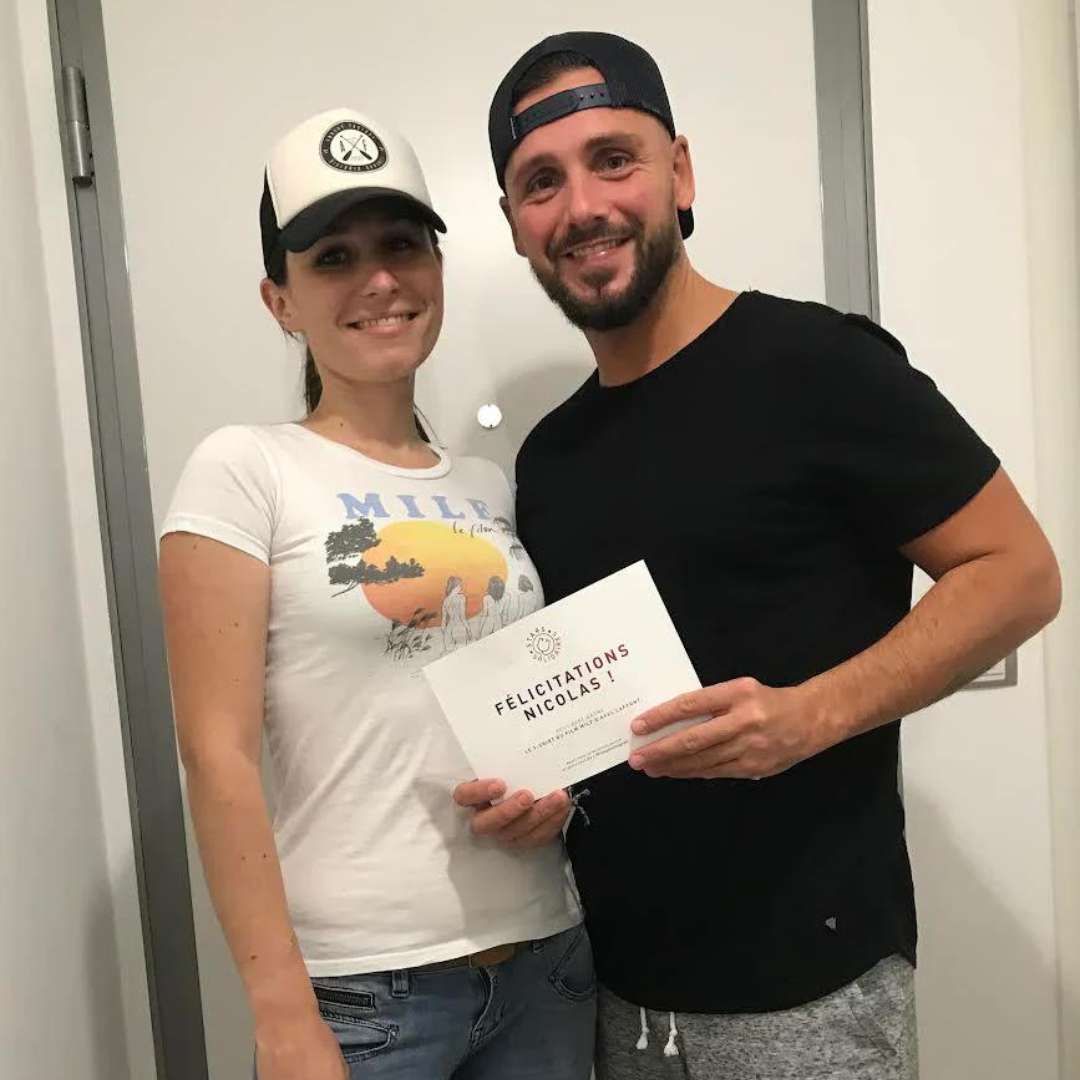 Nicolas et sa compagne avec le t-shirt d'Axelle Lafont